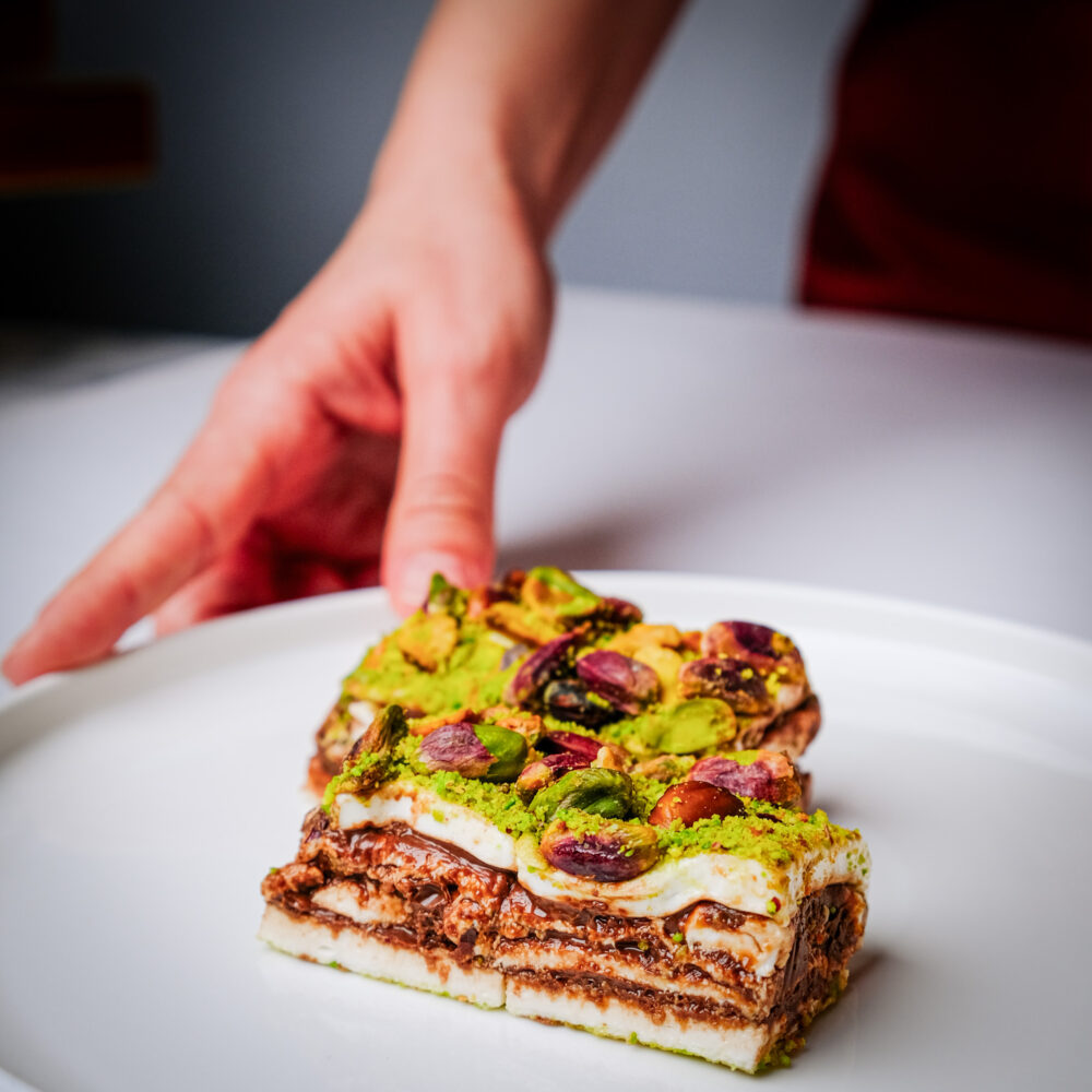 Unutulmaz bir tat yolculuğuna çıkmaya hazır mısınız? Bol taneli Antep Fıstığı, Nutella ve Marshmallow hamuru, damaklarınıza keyif dolu bir serüven sunuyor. Yenilikçi lezzetin tadını çıkarın!